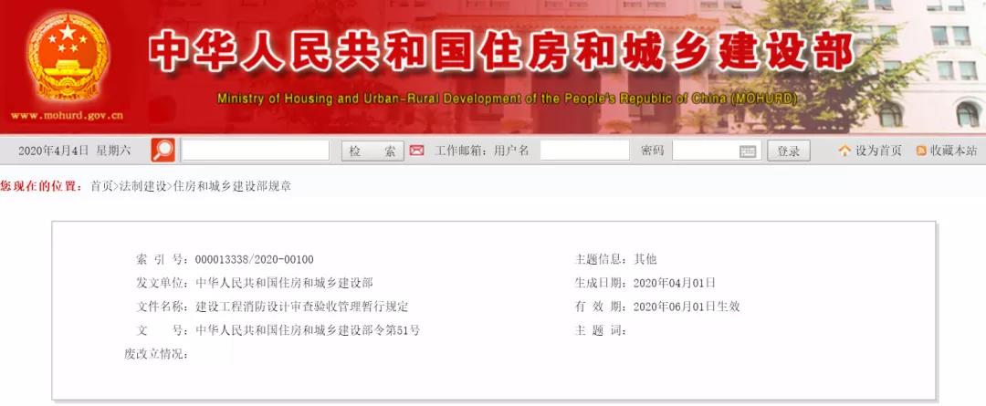 ¡¶½¨É蹤³ÌÏû·ÀÉè¼ÆÉó¼ìÑéÊÕÖÎÀíÔÝÐл®¶¨¡·ÒѾ2020Äê1ÔÂ19ÈÕµÚ15´Î²¿Îñ¼¯»áÉóÒéͨ¹ý£¬ÏÖÓèÐû²¼£¬×Ô2020Äê6ÔÂ1ÈÕÆðÊ©ÐС£