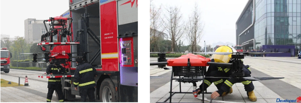 ÓÉÓÚ»ðÊÆÑ¸ËÙÏò¸ß²ãÂûÑÓ£¬ÎÞÈË»ú¾ÈÔ®±à¶ÓÁ¢¼´³ö¶¯¶¼»áÖ÷Õ½Ïû·À³µºÍ¶¼»áÇáÐÍ¿ìËÙ·´Ó¦ÎÞÈË»úÅÝÄ­Ïû·À³µ£¬Ò»¼üÆô¶¯¸ß¿ÕÃð»ðÎÞÈË»úϵͳ£¬¶Ô½¨ÖþÄϲàºÍ¶«²àʵʩ¸ß²ãÍⲿÃð»ð¾ÈÔ®¡£